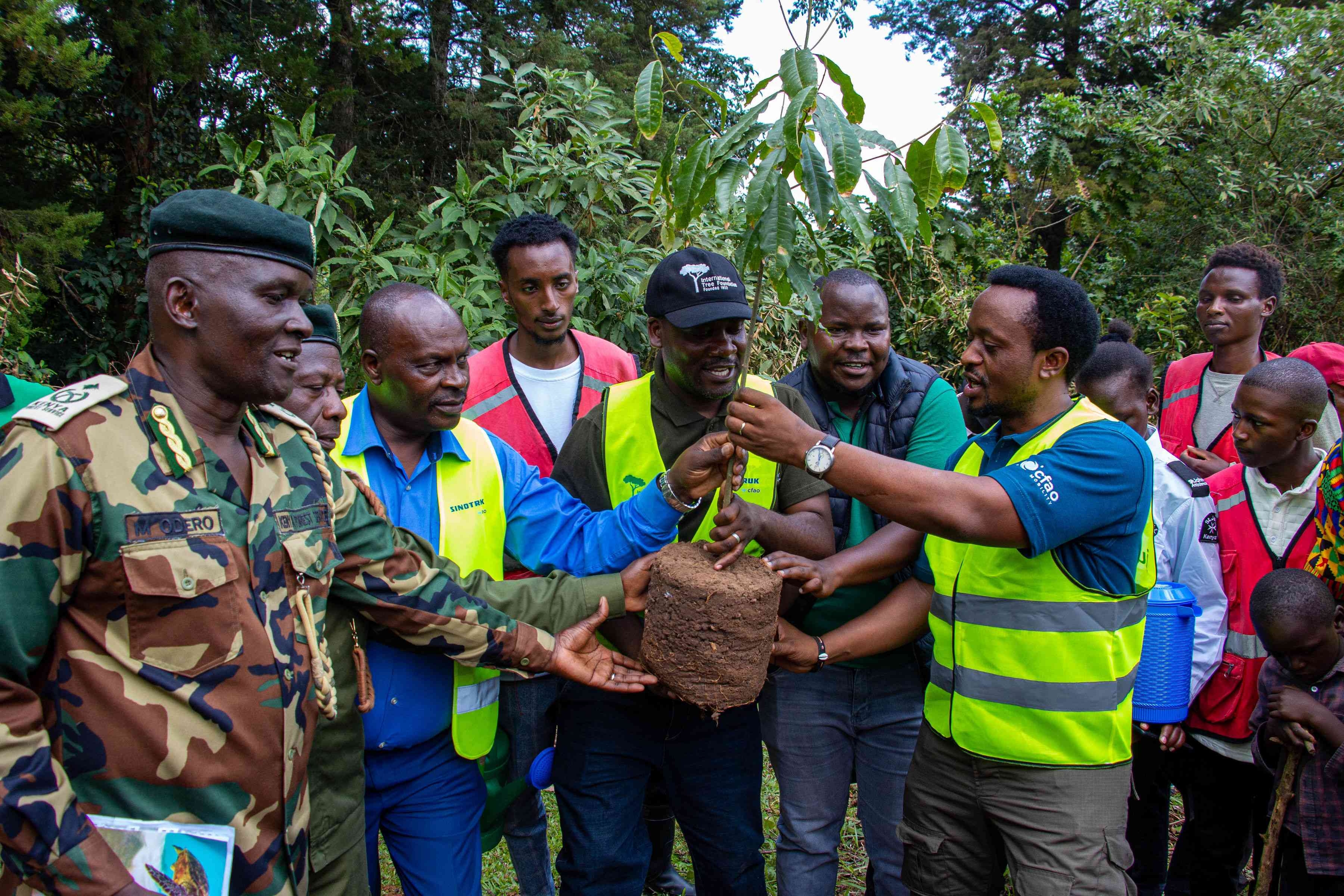 ??活動當天,來自肯尼亞林業局、國際樹木基金會、當地政府、學校、社區的700余人齊聚基蘇木地區卡卡梅加森林,栽種樹苗以恢復1公頃退化的土地。在一片歡聲笑語中,大家認真學習植樹知識和植樹方式,分工協作,共同完成了1000棵樹苗的栽種。這些樹苗不僅為卡卡梅加森林帶來了新的生機,也有效提升了當地社區對森林保護重要性的認識。