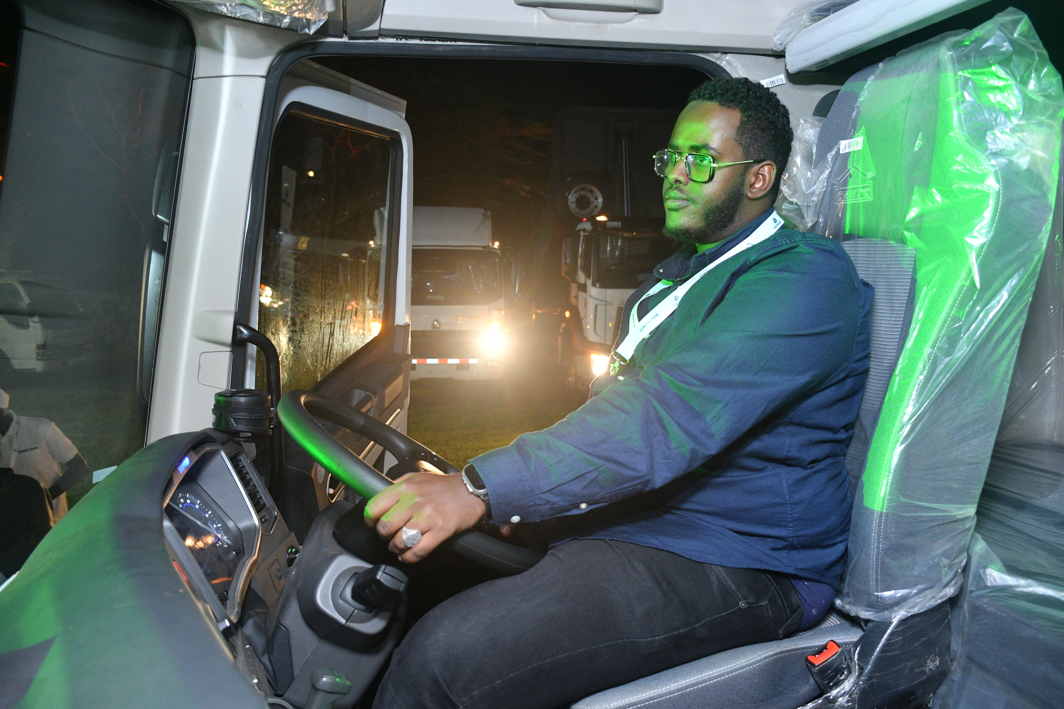 ??活動現場,中國重汽隆重推出HOWO-MAX牽引車,對該車型進行了全方位的展示和介紹,并邀請客戶試乘試駕。該車型配備MC480馬力發動機和16擋自動擋變速箱,適應肯尼亞多種地形和運輸場景需求,主要面向工業及日用品運輸、集裝箱運輸等細分市場用戶。現場同時展出了肯尼亞其他主銷車型HOWO-NX牽引車、HOWO-NX載貨車、HOWO-NX自卸車、HOWO-TX牽引車、HOWO-TX自卸車,HOWO-H2小輕卡和HOWO-H3大輕卡,覆蓋肯尼亞全地形、全場景的運輸。