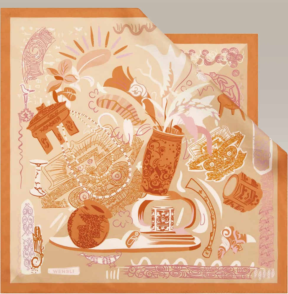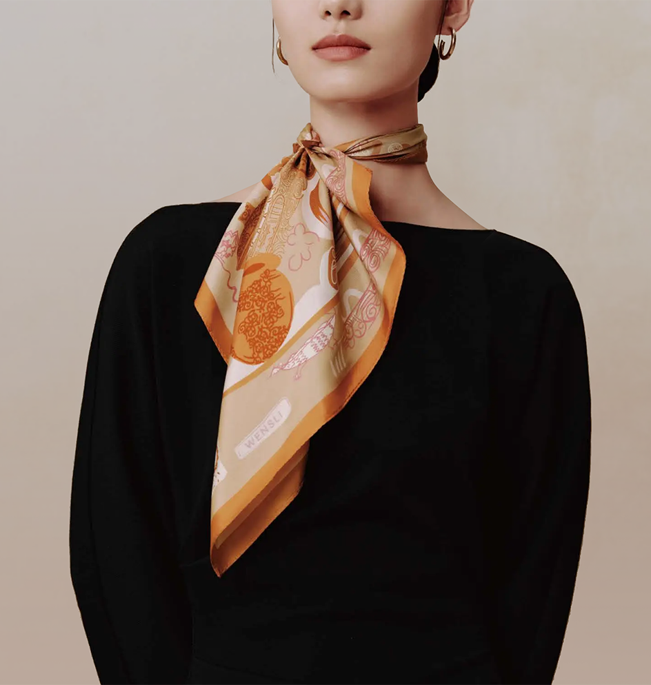 桑蠶絲雙面印花小方巾 |